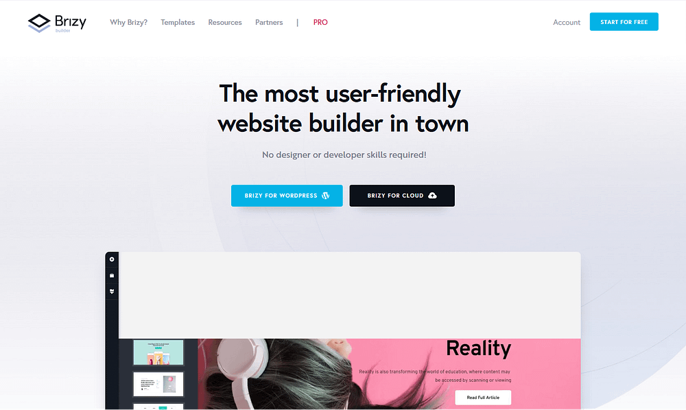 - Brizy Builder: Choose this WordPress/cloud based website builder if you want to create an intuitive site for free.